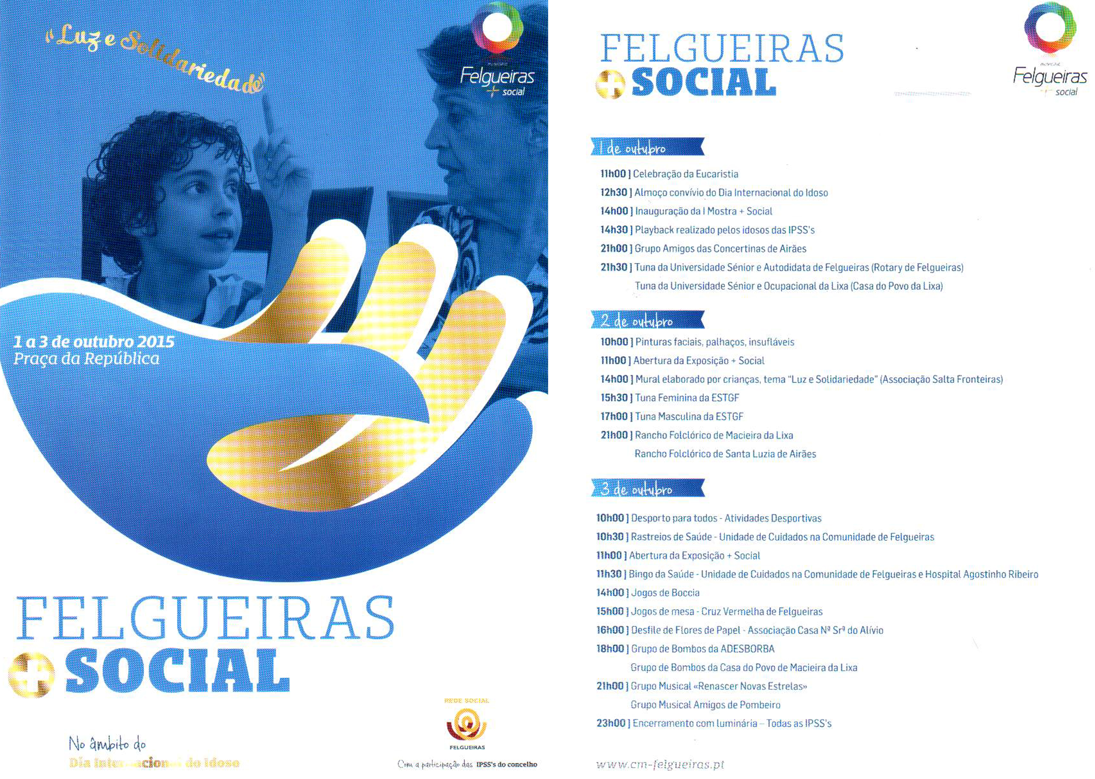 No âmbito do dia Internacional do Idoso, a Câmara Municipal de Felgueiras em parceria com as IPSS’s do concelho, está a organizar a I Mostra +Social “Luz e Solidariedade”, que vai decorrer entre o dia 1 e 3 de Outubro de 2015 na Praça da República. A ADIB estará presente com uma stand onde poderão conhecer melhor a nossa Instituição e comprar artigos realizados pelos nossos utentes, desde a Infância até aos mais idosos. Esperamos então a visita de todos os Associados e especialmente de todos os habitantes da nossa Freguesia.